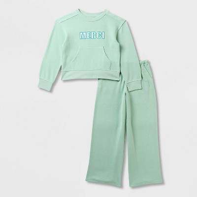 Girls' Adaptive French Terry Pants Set - Cat & Jack™ Light Mint Green