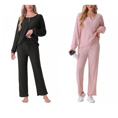 cheibear Women's Waffle Knit Lounge Longsleeve Soft Pajama Set