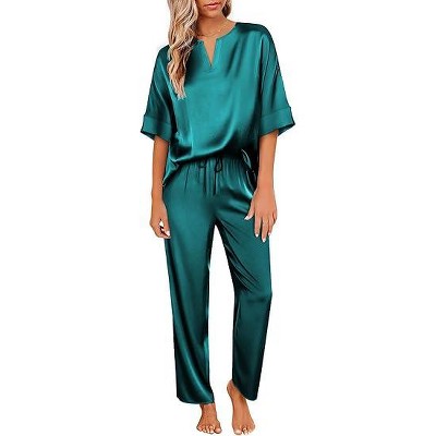 CTM Women's Satin Long Sleeve Pajama Lounge Set