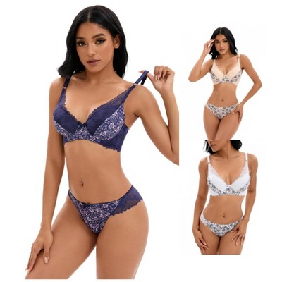 Agnes Orinda Women's Plus Size Lace Polka Dots 2-Piece Lingerie Set
