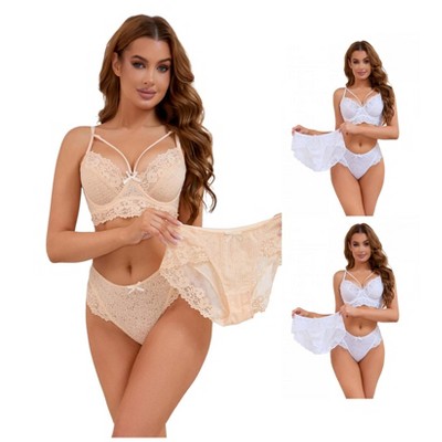 Agnes Orinda Women's Plus Size Lace Polka Dots 2-Piece Lingerie Set