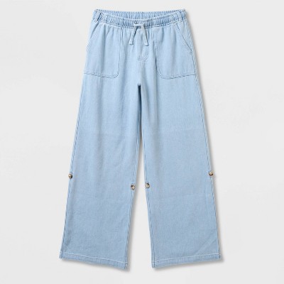 Girls' Wide Leg Pull-On Pants - Cat & Jack™ Light Wash