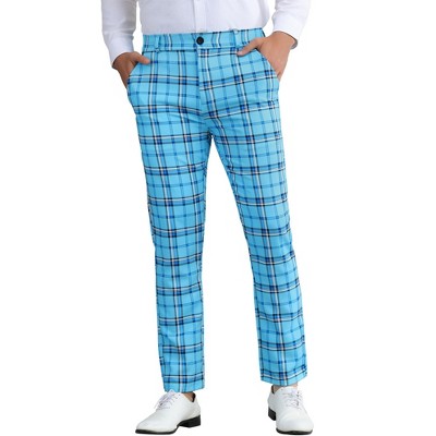 INSPIRE CHIC Men's Regular Fit Flat Front Classic Plaid Suit Pants