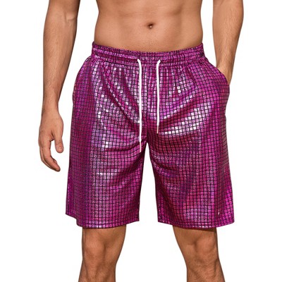 INSPIRE CHIC Men's Knee Length Elastic Waist Faux Leather Casual PU Shorts