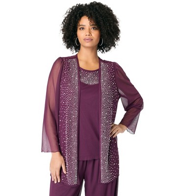 Roaman's Mesh Overlay Cardigan And Tank Set.