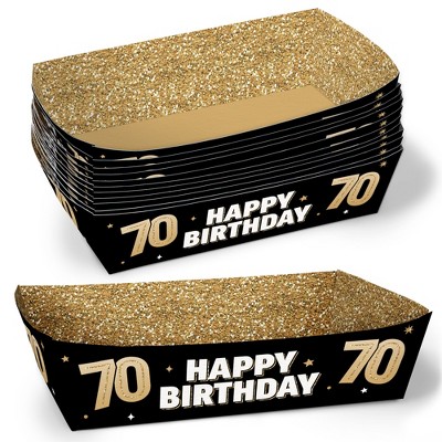 Big Dot of Happiness 70th Birthday Party Paper Food Trays, Disposable Food Boats, Black & Gold, Picnic, BBQ, Double-Sided Paper Meal Holders - 12 Ct