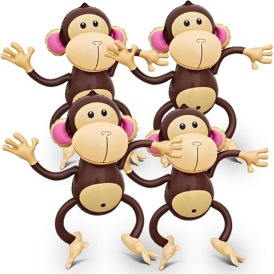 4E's Novelty Inflatable Monkeys – 4 Pack, 27" Large Monkey Decorations for Jungle Theme, Safari Birthday Parties, Baby Shower Favors