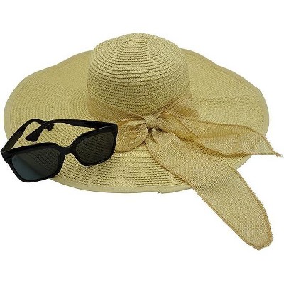 4E's Novelty Floppy Sun Hat with Sunglasses, UPF 50+ Packable Straw Hat for Women, Adjustable Beach Hat, Travel