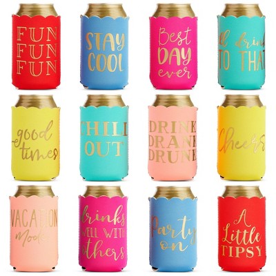 Blue Panda 12-Pack Scalloped Can Cooler Sleeve for Drinks - Girls Trip Gifts Favors for Birthday Party, Bachelorette, 2.5x4.2