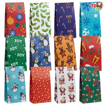 Joyfy 72 Pcs Christmas Goody Kraft Bags, 12 Festive Designs Treat Gift Bags for Christmas Party Supply Party Favors Classrooms & Crafts (9.75"x5")