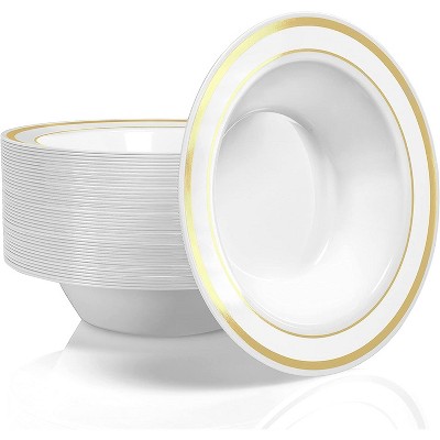 Stock Your Home 12-Oz Disposable Plastic Gold Dinner Bowls (50 Pack)
