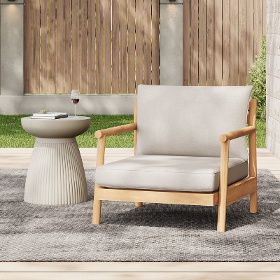 Patio Acacia Wood Club Chair with Water-resistant Cushion, Teak + Beige (1 PC )