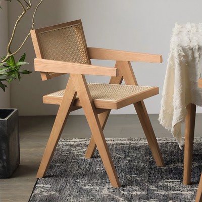 Moda Furnishings Modern Mid Century Dining Chairs Set of 2, Rattan Accent Chairs, Outdoor Wood Chairs with Armrest