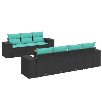vidaXL 8 Piece Patio Sofa Set with Cushions Black Poly Rattan - Black and Blue