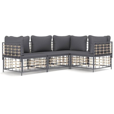 vidaXL Anthracite Dark Gray 4 Piece Patio Lounge Set, Poly Rattan Outdoor Furniture with Cushions, Modular Design for Garden, Patio, Deck