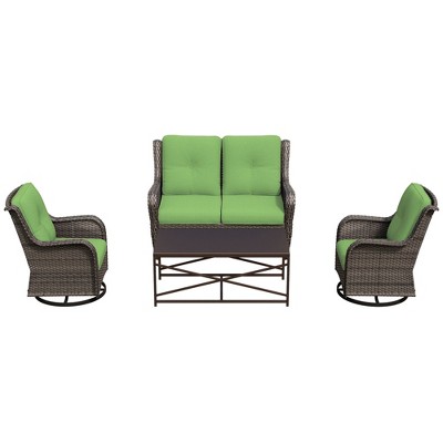 UPTIOT 4-Piece Outdoor Lounge Set with Swivel Rocking Chairs, Double Sofa & Rectangle Table