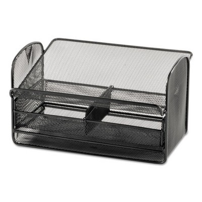 Safco Onyx Hanging Organizer with Drawer, Under Desk Mount, 3 Compartments, Steel Mesh, 12.33 x 10 x 7.25, Black
