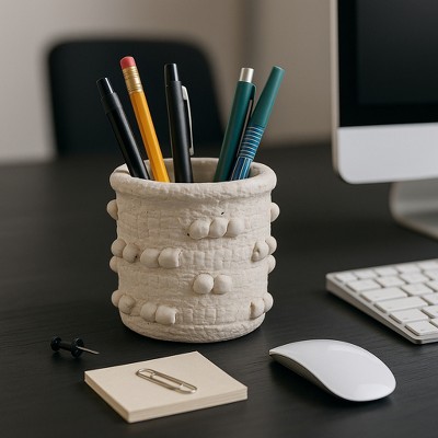 Decorative Textured Desktop Organizer for Home Decor - Modern Office Accessory for Workspace, Small Desk Storage, or Bedroom Accent - 4", White