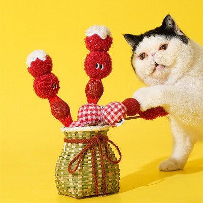 ZEZE Tanghulu Catnip Ball Toy – Plush Skewer - Inspired Cat Toy with Catnip, Red Fruit Design for Cultural & Interactive Play