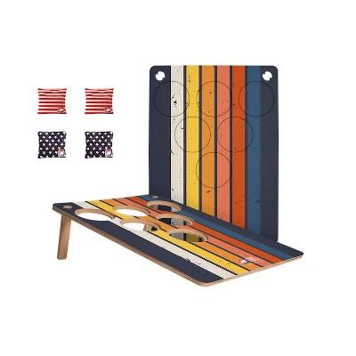 Skip's Garage | Blue Retro Stripes Cornhole Pong Game