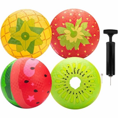Fruit Themed Playground Balls (8.5 inches) w Air Pump- Recess Dodgeball, Kickball, Gagaball Official Play & School -Fun Outdoor Toys & Gifts for Kids