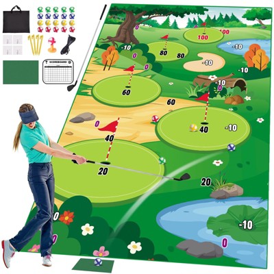 Clemas Outdoor Golf Chipping Game Mat with Club, Toy Sports Equipment Stick Chip Game