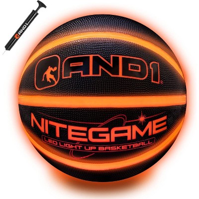 AND1 Nitegame LED Light Up Basketball, Glow in The Dark, Regulation Size 7 (29.5”), Made for Indoor/Outdoor, Sold Deflated, Black/Orange