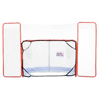 Racxily 72" Double Fish Hockey Goal Net with Backstop - Red & White Street Hockey Set for Adults, Includes Practice Targets