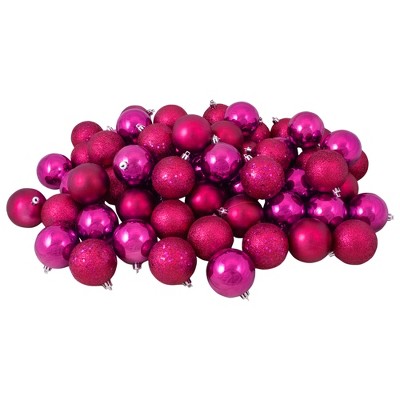 Northlight 4-Finish Shatterproof Christmas Ball Ornaments 2.5" (60mm) - Magenta Pink - 60ct