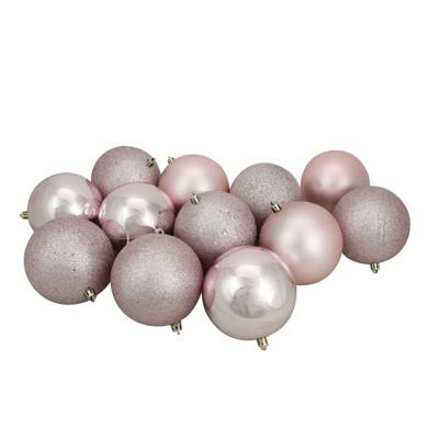 Northlight 12ct Shatterproof 4-Finish Christmas Ball Tree Ornament Set 4" - Pink