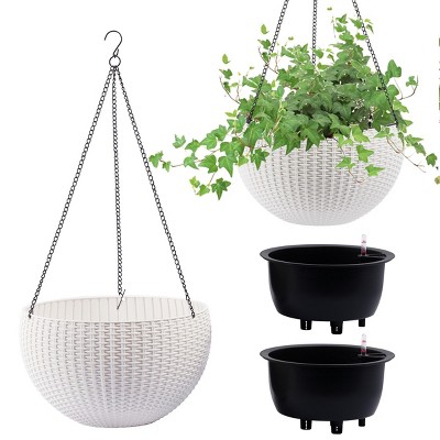 Create a green indoor or outdoor spot with planters and your favorite plants. At Target, find the right size planter for your greenery. Whether you want to update your garden, backyard or front porch, choose planters by material that match your decor style. Pick from a wide range of stoneware, ceramic, cement and plastic pots. Plastic planters are lightweight and easy to move around. Refresh corners inside your home or outdoors with hanging baskets or wall planters that help keep the floor space free. Add pops of green to your tabletop with small indoor plants like succulents or terrariums. Drainage holes are key as they help drain out excess water to save plants from being overwatered. Keep a saucer under the planters to protect your floors from water stains and dirt. Self-watering pots are a great option for everyone who is new to the world of gardening. With just a few clicks, find everything you need for your planting needs, from small planters to raised garden beds and other gardeners’ must-haves.