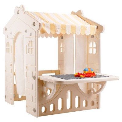 A playhouse can be a child’s best friend. A high-quality playhouse can provide hours of entertainment for kids and also turn out to be a fun learning experience. They come in all shapes and sizes, from cardboard to wood, and some are even foldable and can be stored away when not in use. A playhouse is the perfect way to encourage creativity and imagination in your children. They can pretend to be anything or anyone they want, exploring different scenarios and adventures. From being aboard a pirate ship, a forest cabin or castle, hours of pretend play await. Whether it’s an indoor or outdoor playhouse, they are a great way to teach your kids simple everyday routines around the house. They can even have fun play dates, pretending to make dinner or host tea parties with their friends and plush toys. Your kids will love role-playing in their very own space. Pick out a cardboard playhouse that doubles as a great art project made with outlines that can be colored in to fit the taste of any little one. Some playhouses come with slides and ladders that can be set up in the backyard while an elaborate outdoor wooden playhouse comes complete with doors, a patio, doorbell and furniture. No matter what type of playhouse you choose, your kid is sure to have fun exploring new and exciting imaginary worlds.