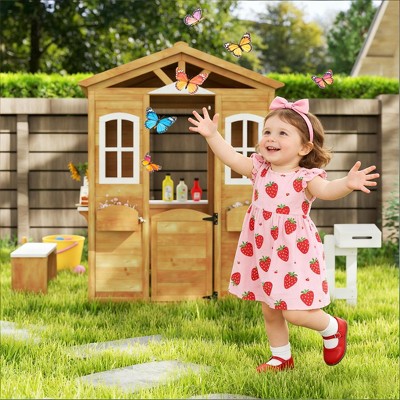 Dexmalle Wooden Kids Play House with Picnic Bench