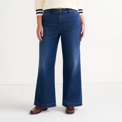 Lands' End Women's Recover High Rise Wide Leg Blue Jeans