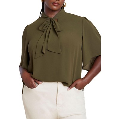 ELOQUII Bow Blouse With Flutter Sleeve