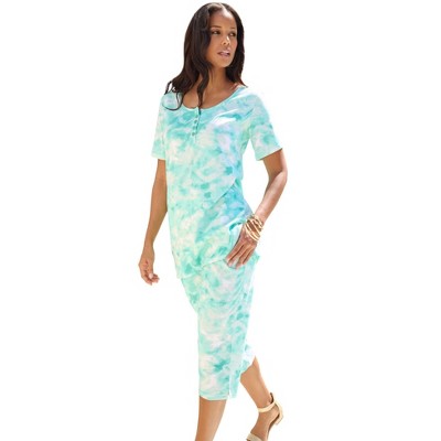 Roaman's Plus Size 2-Piece Printed Henley Top And Capri Set