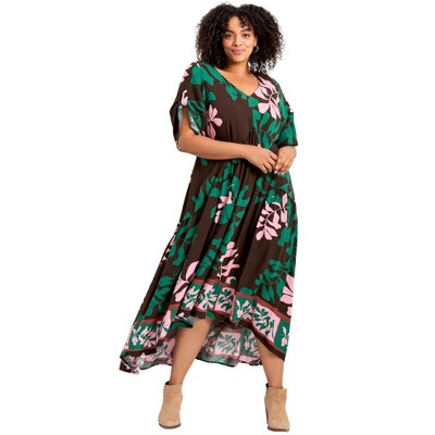 Roaman's Plus Size Stretch Knit High Low Short Sleeve Maxi Dress