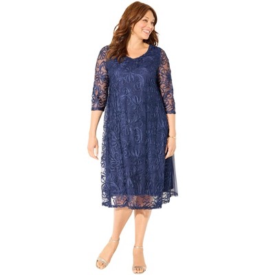 June + Vie by Roaman's Bell-Sleeve Lace Midi Dress