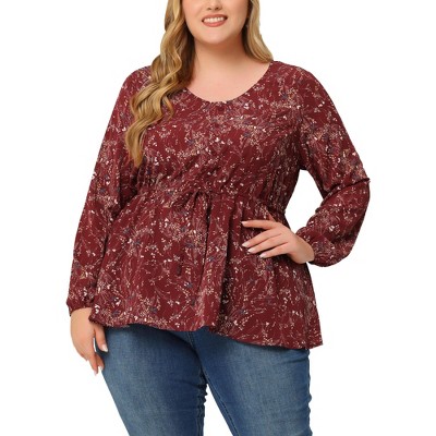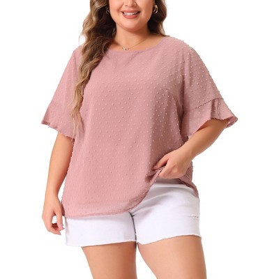 Women's Plus Size V Neck Swiss Dots Puff Sleeve Casual Blouses - Agnes Orinda