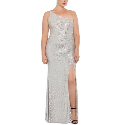 XSCAPE Womens Sequined One Shoulder Gown Dress