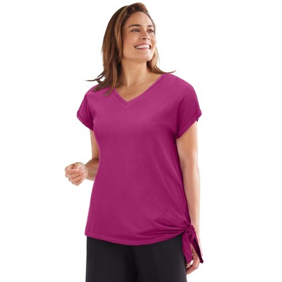 Woman Within Short Sleeve Ruffle Hem Polo Tunic