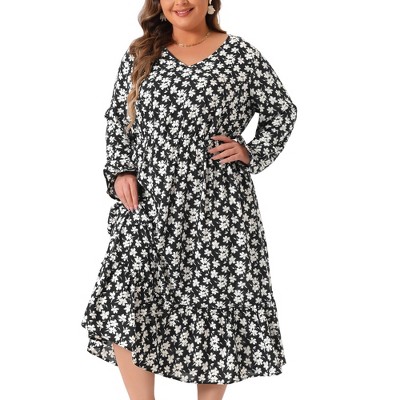 Agnes Orinda Women's Plus Size Deep V Neck Cap Sleeve Floral Dresses