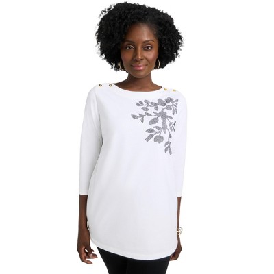 Roaman's Plus Size Slub V-Neck Boyfriend Tunic Top
