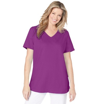 Woman Within Short-Sleeve V-Neck Shirred Tee