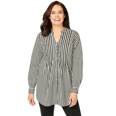 Agnes Orinda Women's Plus Size Stripe Print V Neck Short Sleeve Casual Blouses