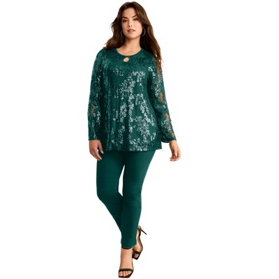Roaman's Lace-Trim Velour Tunic