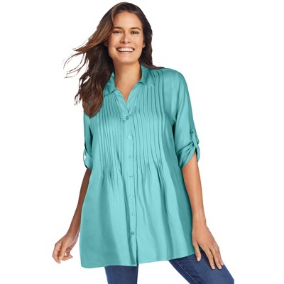Woman Within Rayon 7-Day Pintucked Tunic Blouse