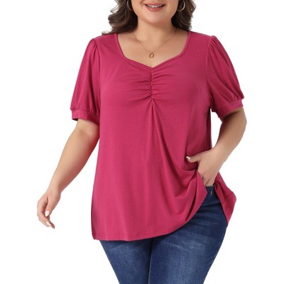 Women's Plus Size Crew Neck Short Sleeve Casual Knit Textured T-Shirts - Agnes Orinda