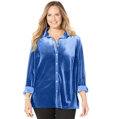 Catherines Anywear Velvet Buttonfront Shirt