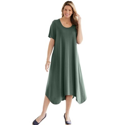 Woman Within Roll-Tab Sleeve Crinkle Shirtdress